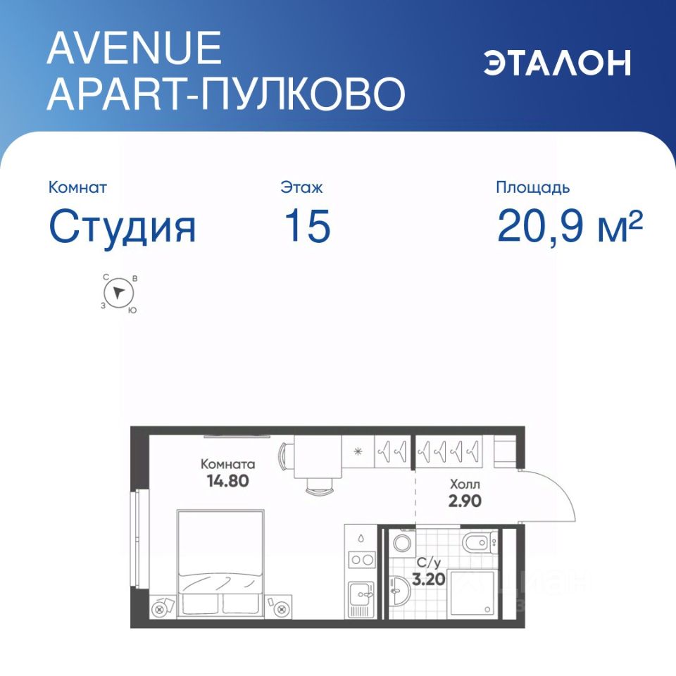 Продается апартаменты-студия с чистовой отделкой в ЖК AVENUE-APART Пулково.