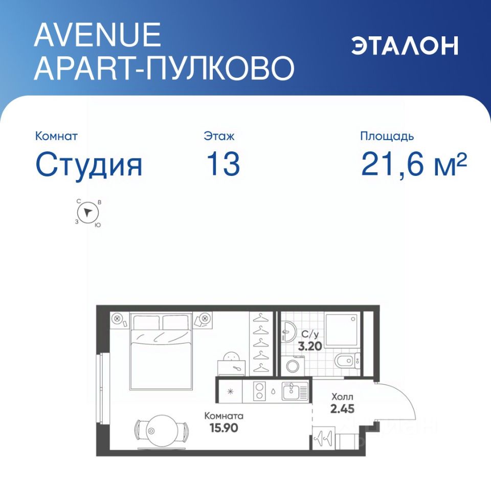 Продается апартаменты-студия с чистовой отделкой в ЖК AVENUE-APART Пулково.