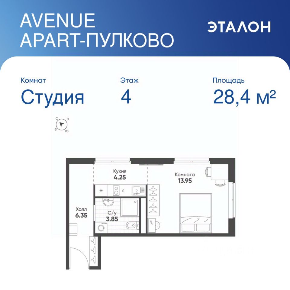 Продается апартаменты-студия с чистовой отделкой в ЖК AVENUE-APART Пулково.