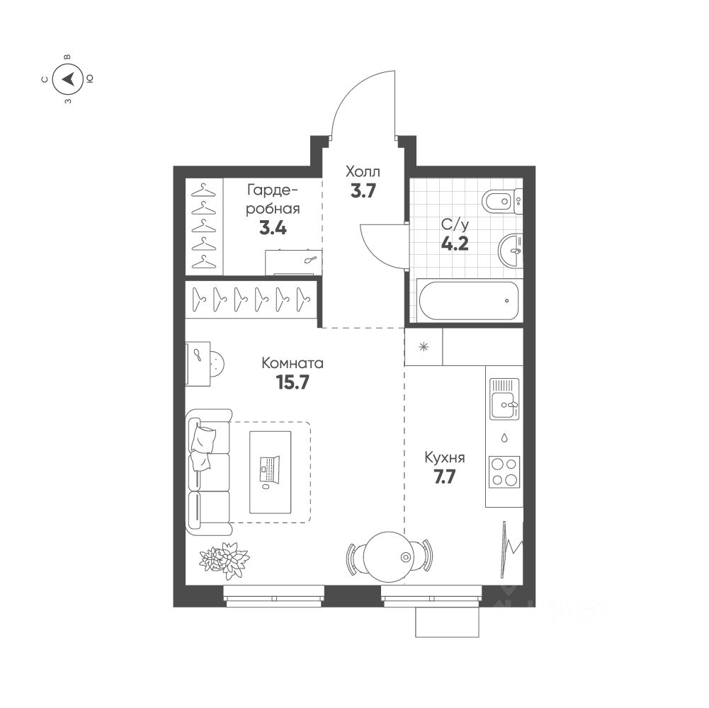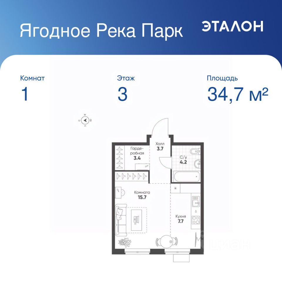 Продается 1-к квартира без отделки в ЖК "Ягодное Река Парк".