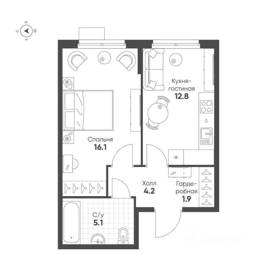 Общая площадь квартиры — 40.1 кв. м, этаж 1 из 1.