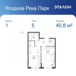 Общая площадь квартиры — 40.8 кв. м, этаж 5 из 12.