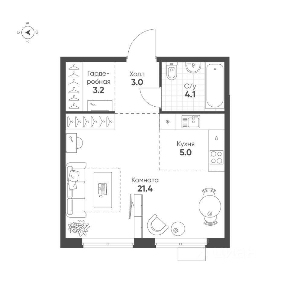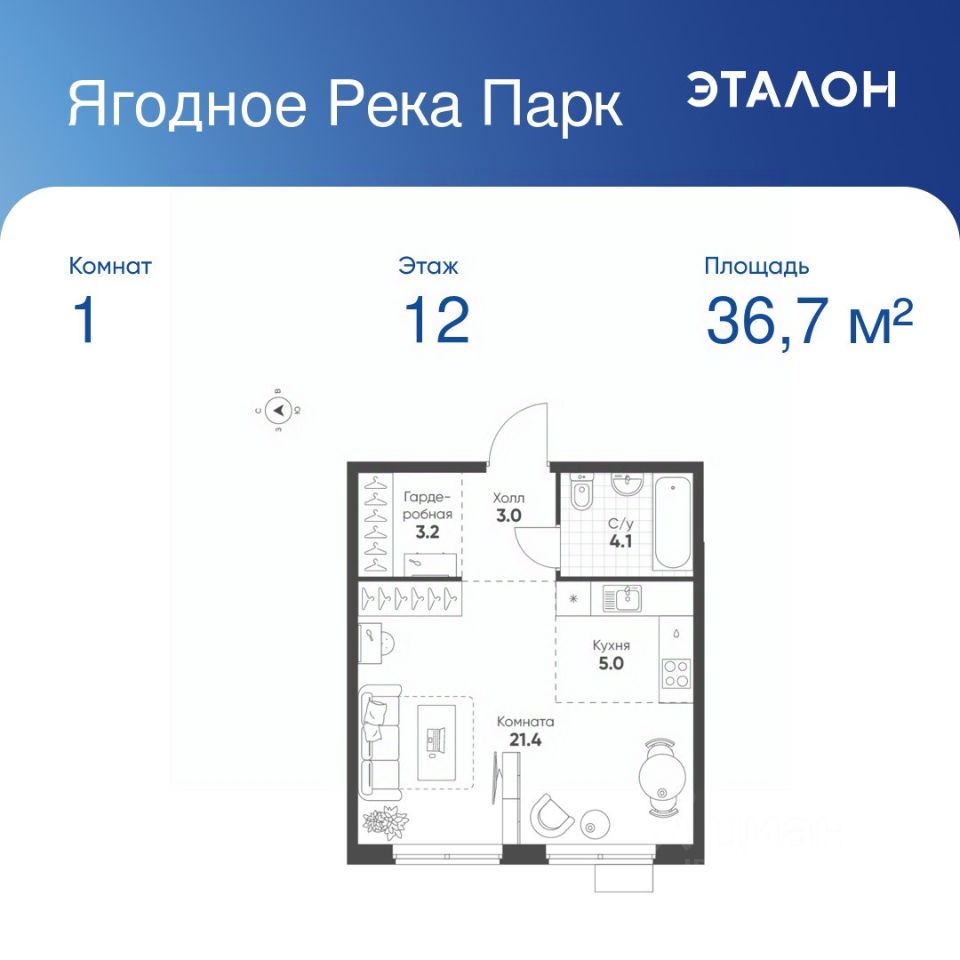 Продается 1-к квартира без отделки в ЖК "Ягодное Река Парк".