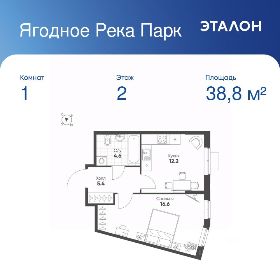 Продается 1-к квартира без отделки в ЖК "Ягодное Река Парк".