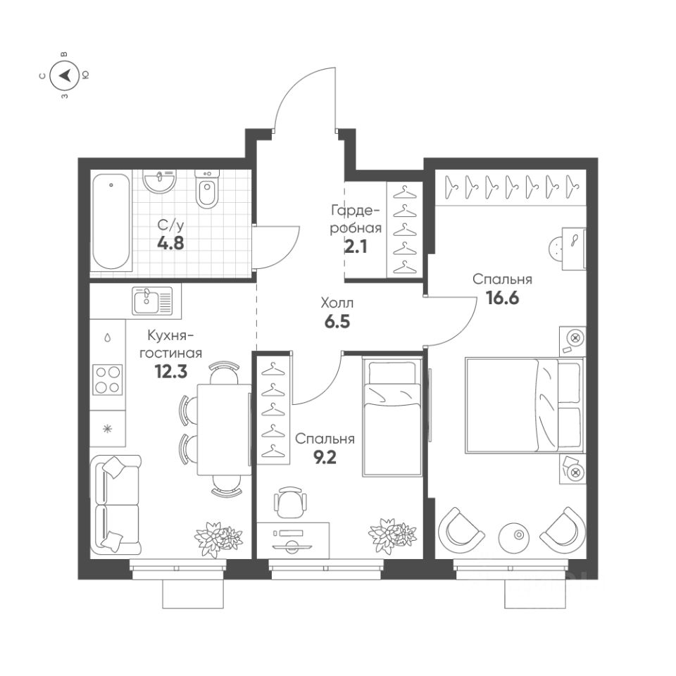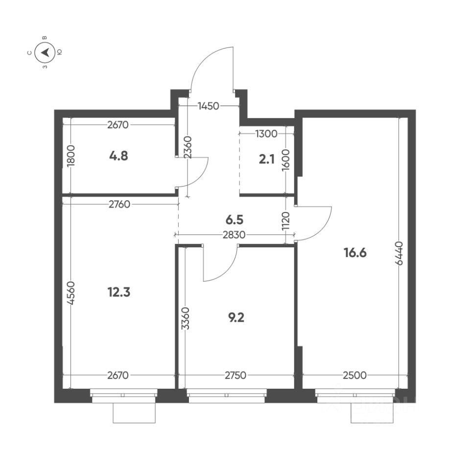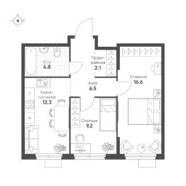 Общая площадь квартиры — 51.5 кв. м, этаж 1 из 12.
