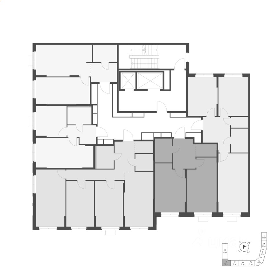 Общая площадь квартиры — 46.4 кв. м, этаж 4 из 12.