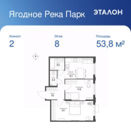 Продается 2-к квартира без отделки в ЖК "Ягодное Река Парк".