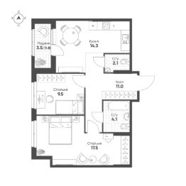 Общая площадь квартиры — 60.3 кв. м, этаж 1 из 2.