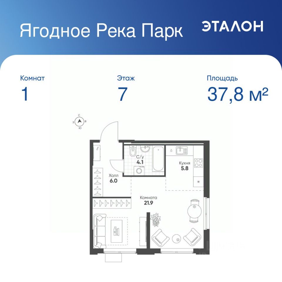 Продается 1-к квартира без отделки в ЖК "Ягодное Река Парк".
