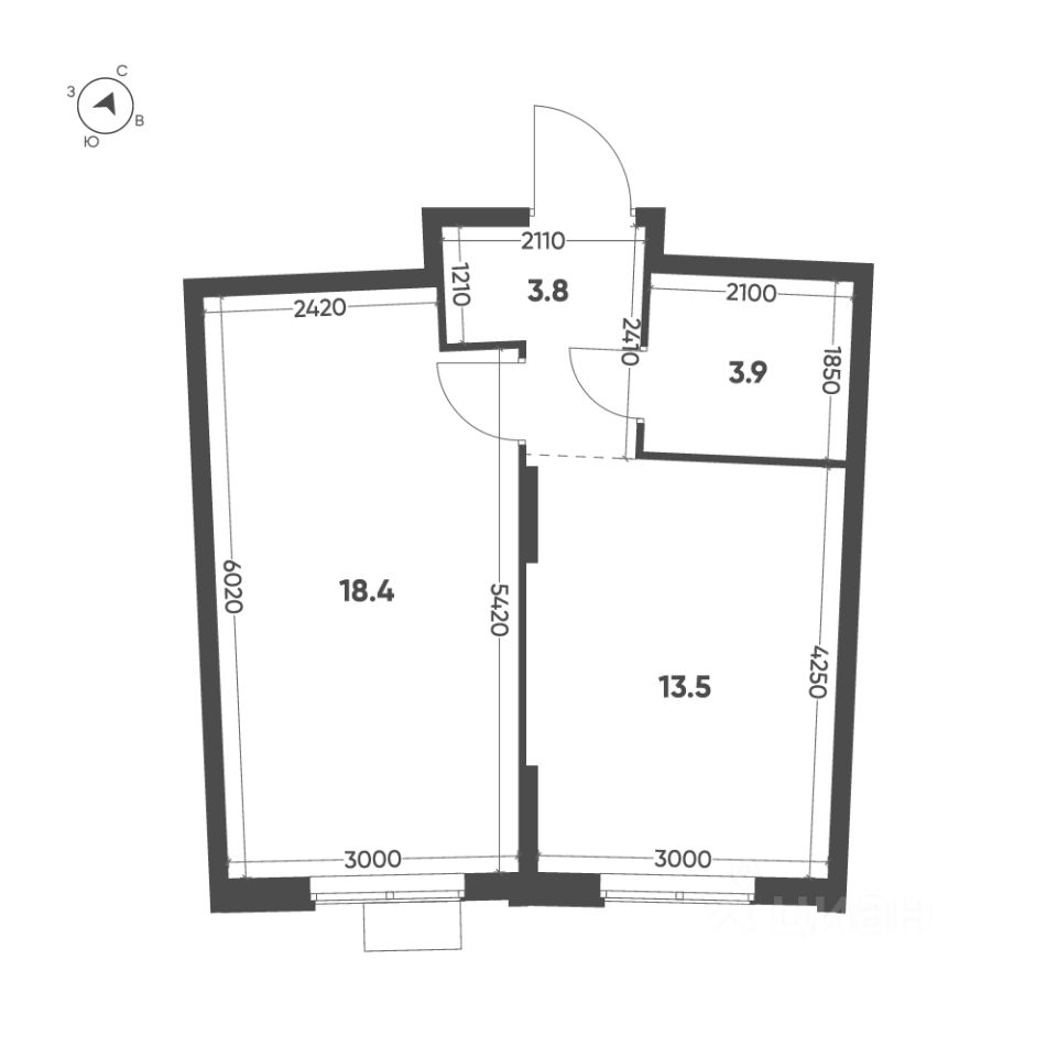 Общая площадь квартиры — 39.6 кв. м, этаж 8 из 9.