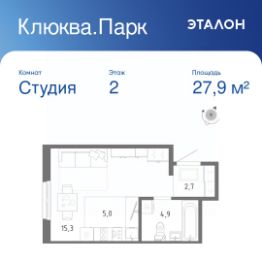 Общая площадь квартиры — 27.9 кв. м, этаж 2 из 12.