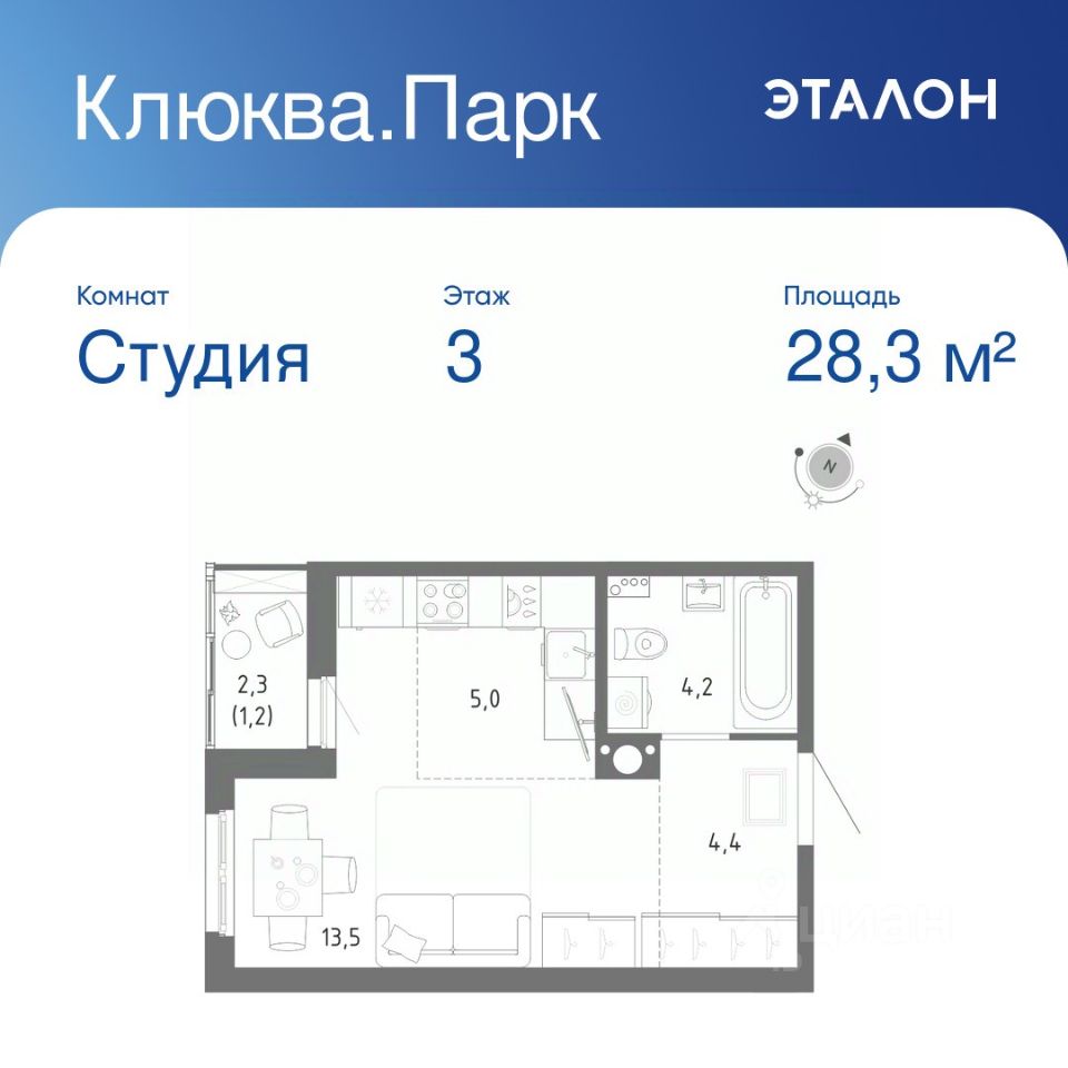 Продается студия без отделки в ЖК "Клюква.Парк".