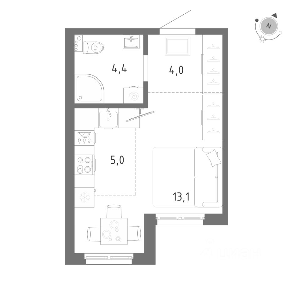 Продается студия без отделки в ЖК "Клюква.Парк".