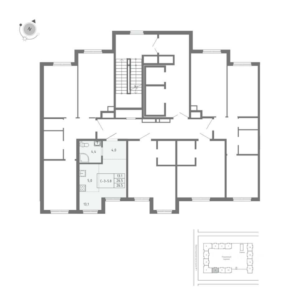 Общая площадь квартиры — 26.5 кв. м, этаж 2 из 12.
