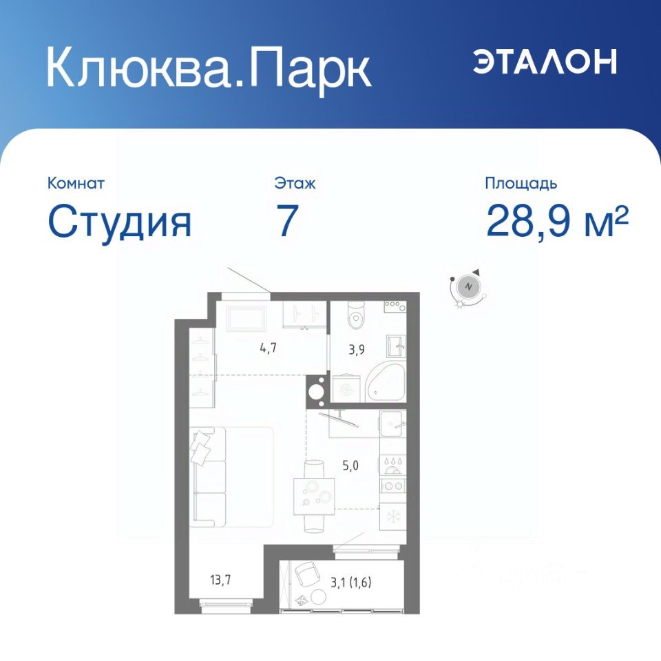 Продается студия без отделки в ЖК "Клюква.Парк".