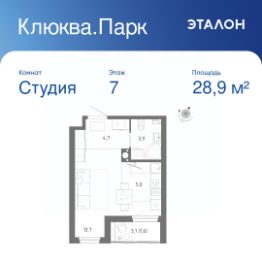 Общая площадь квартиры — 28.9 кв. м, этаж 7 из 12.