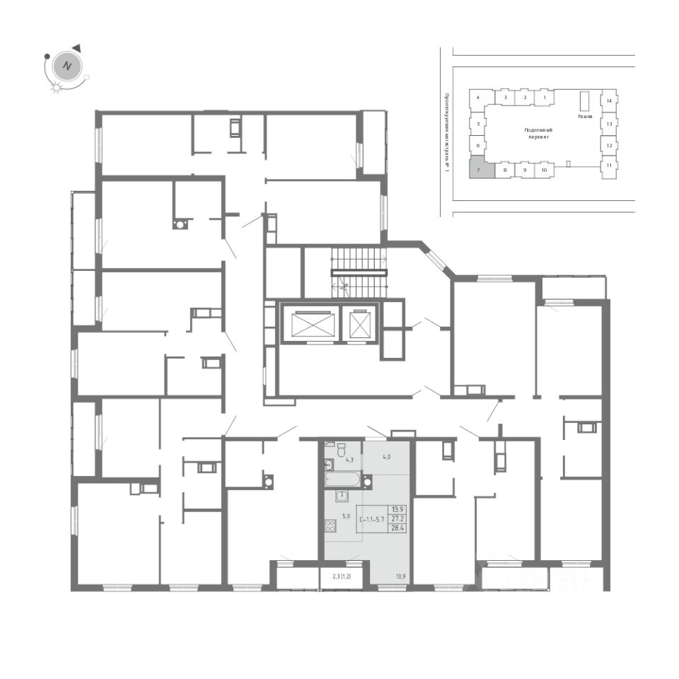 Общая площадь квартиры — 28.4 кв. м, этаж 3 из 12.