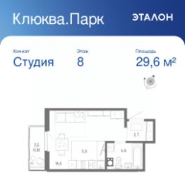 Общая площадь квартиры — 29.6 кв. м, этаж 8 из 12.