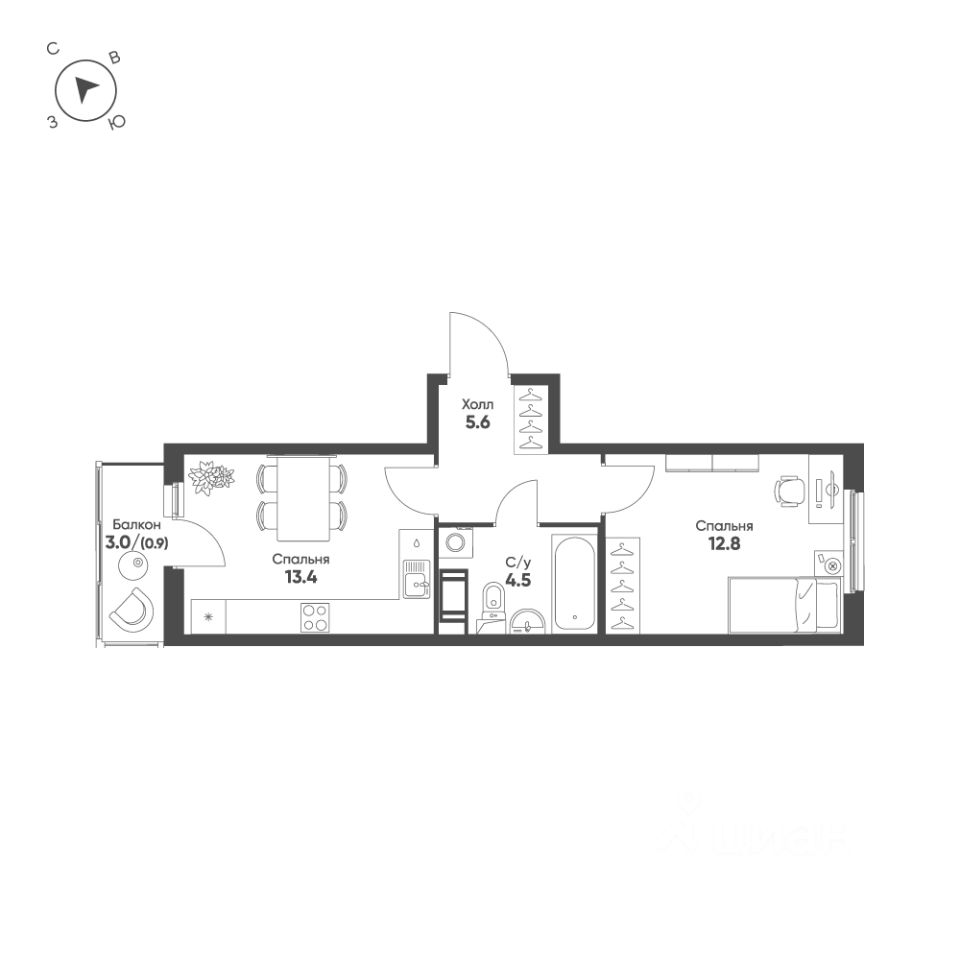 Продается 1-к квартира без отделки в ЖК "Клюква.Парк".