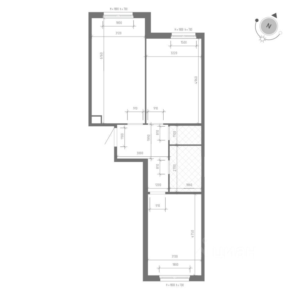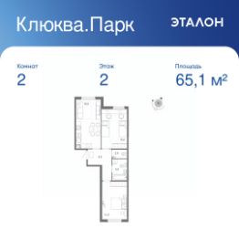 Общая площадь квартиры — 65.1 кв. м, этаж 2 из 12.