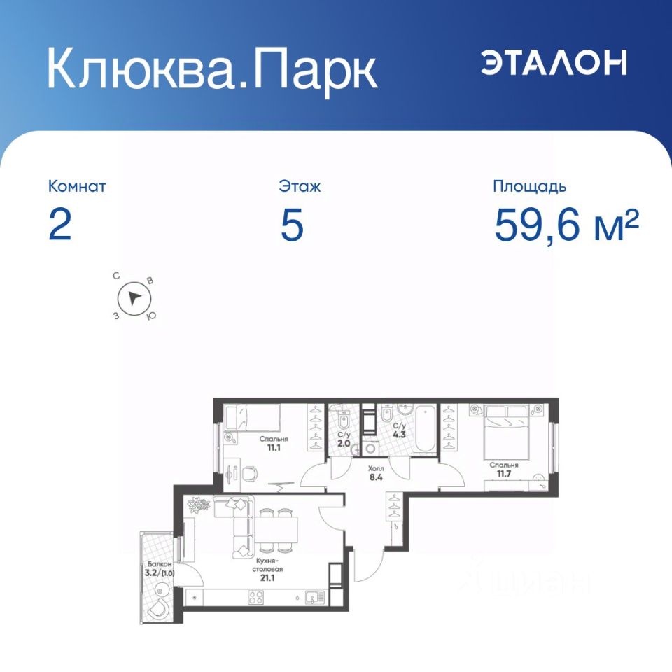 Продается 2-к квартира без отделки в ЖК "Клюква.Парк".