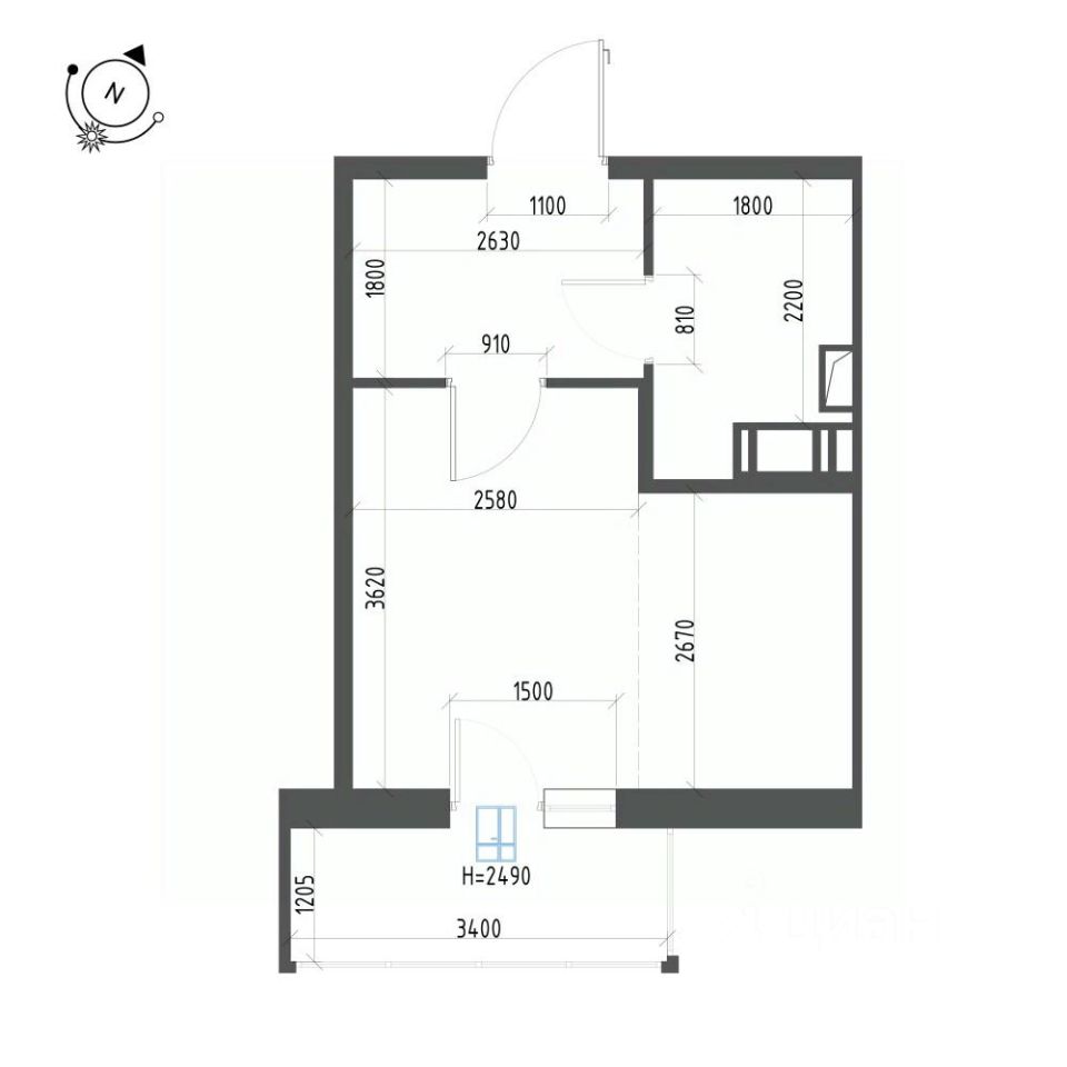 Общая площадь квартиры — 24.8 кв. м, этаж 3 из 12.
