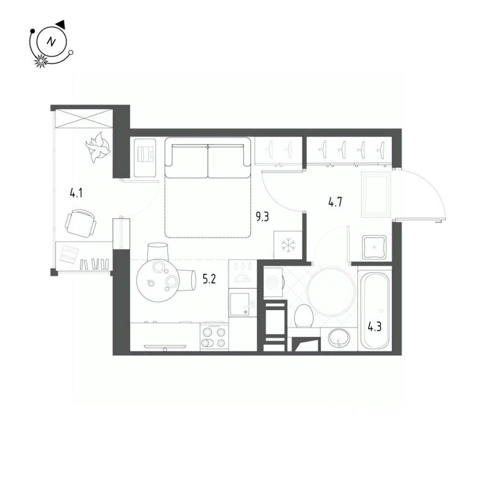 Общая площадь квартиры — 24.9 кв. м, этаж 7 из 12.