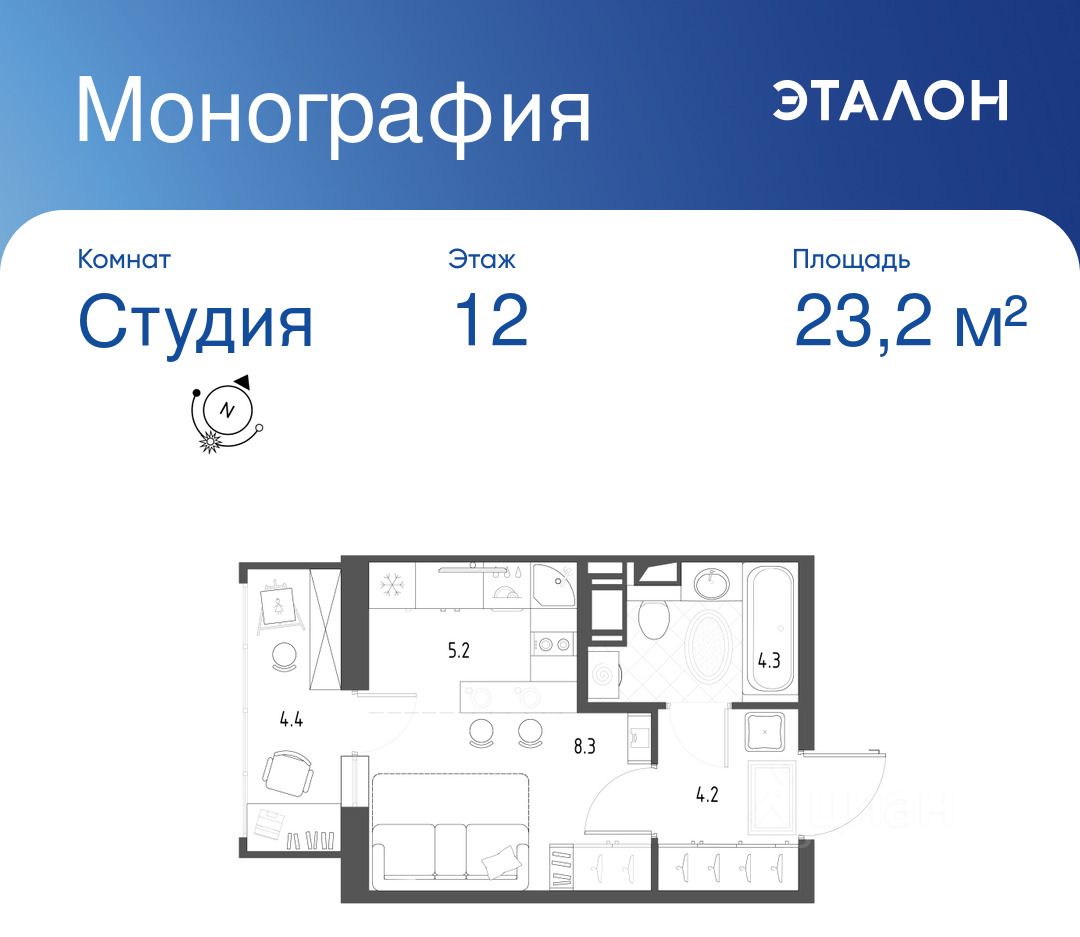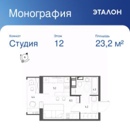 Общая площадь квартиры — 23.2 кв. м, этаж 12 из 12.