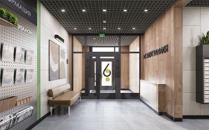 Интерьеры общественных зон жилого проекта Монография оформлены в едином стиле. В дизайне используются текстуры натуральных материалов и естественная цветовая палитра.