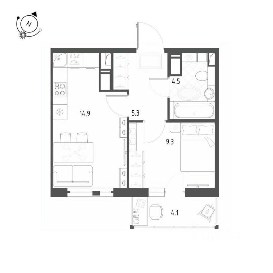 Продается 1-к квартира без отделки в ЖК "Монография".