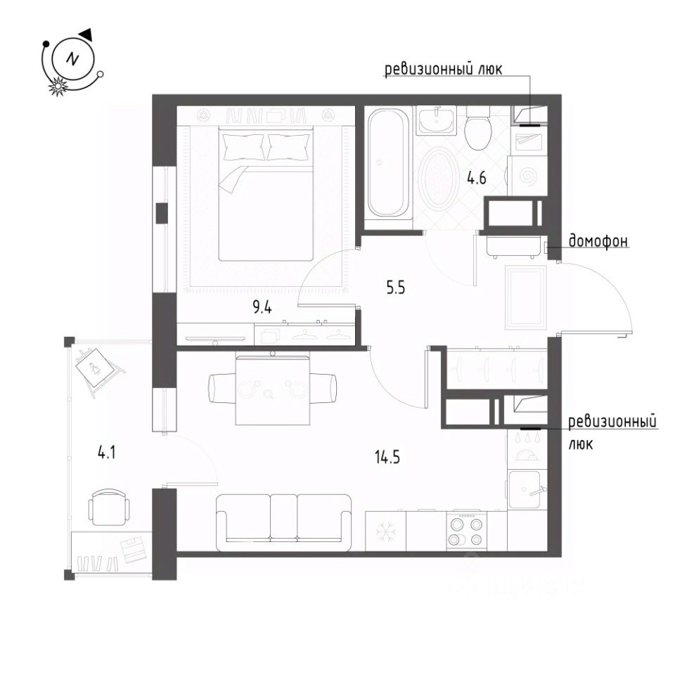 Продается 1-к квартира без отделки в ЖК "Монография".