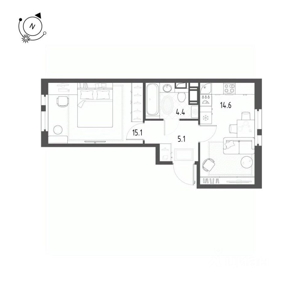 Продается 1-к квартира без отделки в ЖК "Монография".