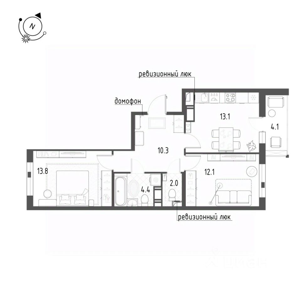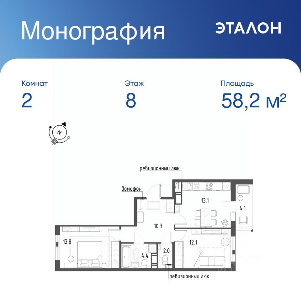 Общая площадь квартиры — 58.2 кв. м, этаж 8 из 12.