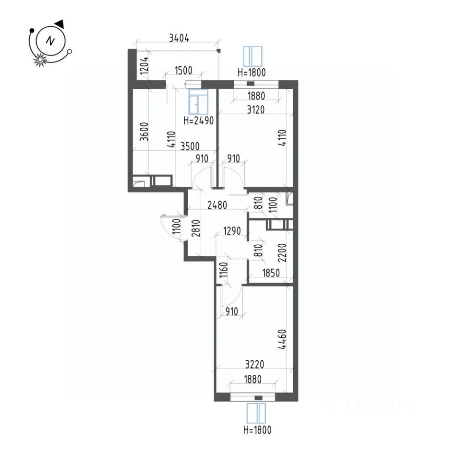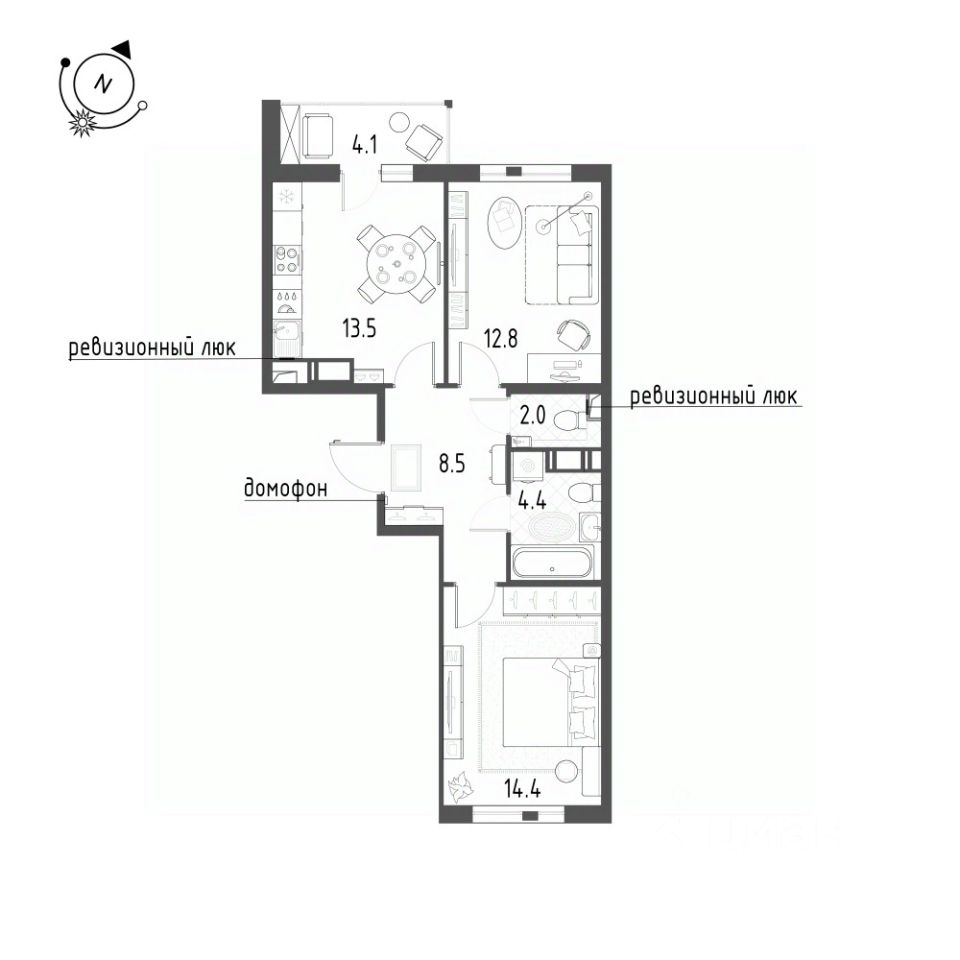 Общая площадь квартиры — 57.7 кв. м, этаж 9 из 12.