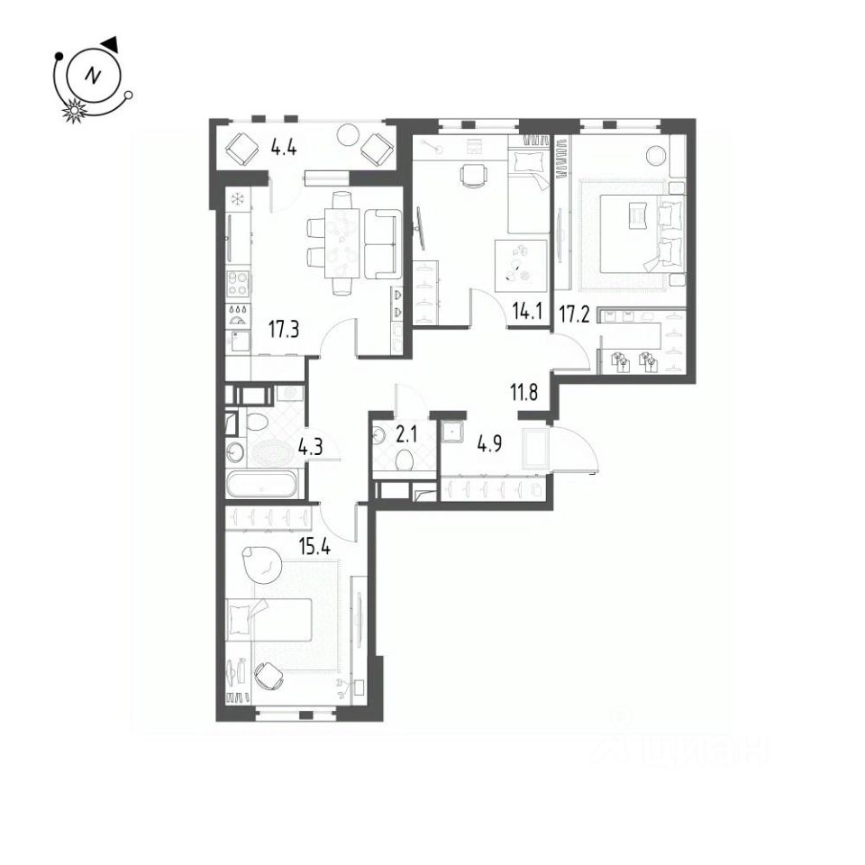 Продается 3-к квартира без отделки в ЖК "Монография".