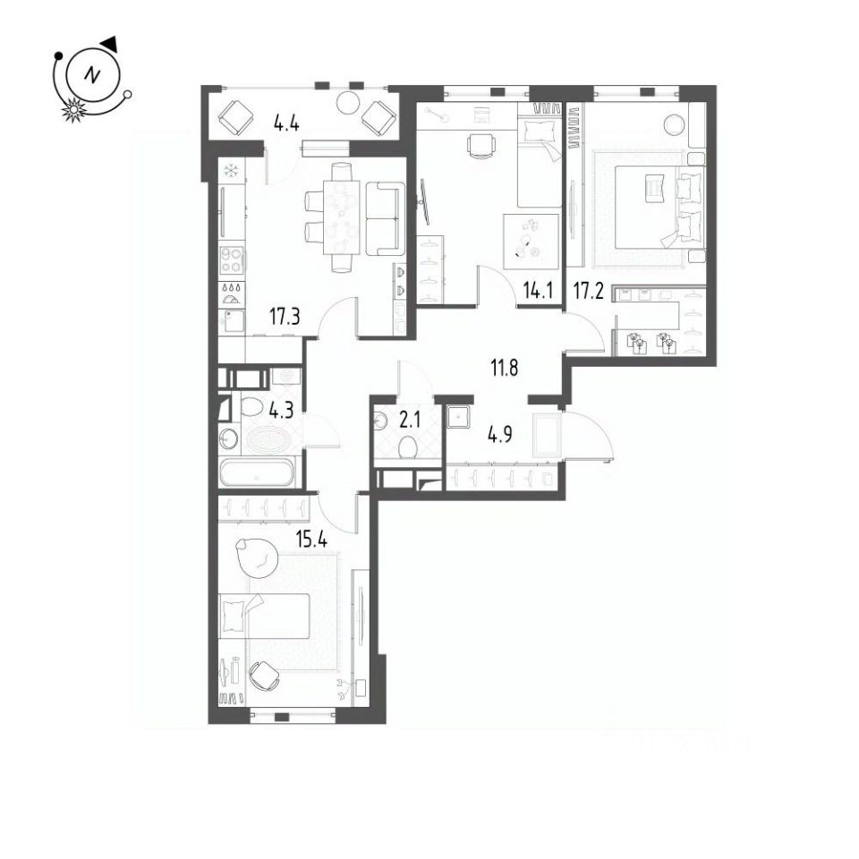 Продается 3-к квартира без отделки в ЖК "Монография".