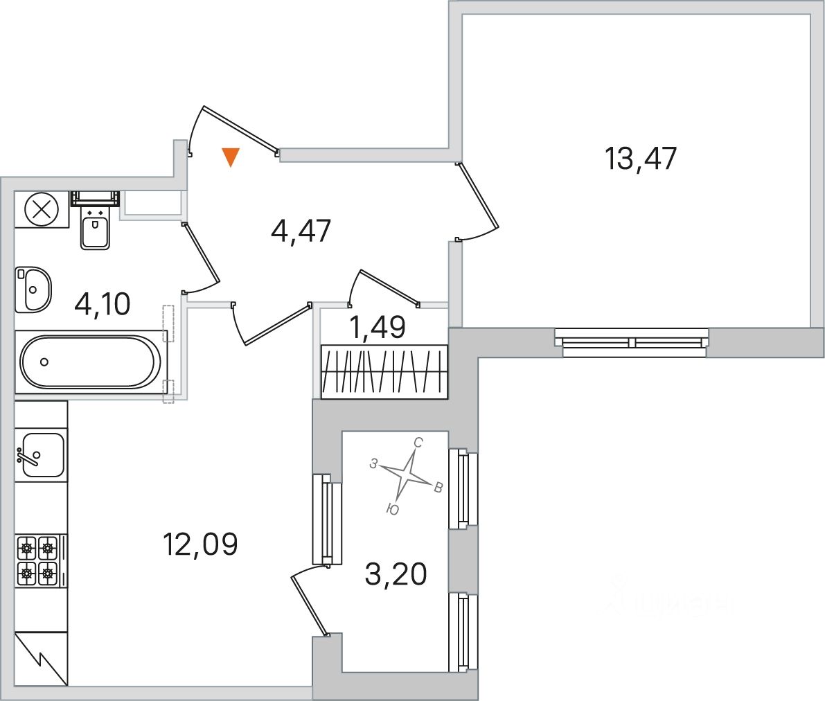 Жилая площадь13,5 м²