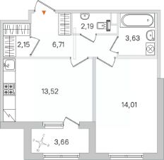 Общая площадь42,21 м²