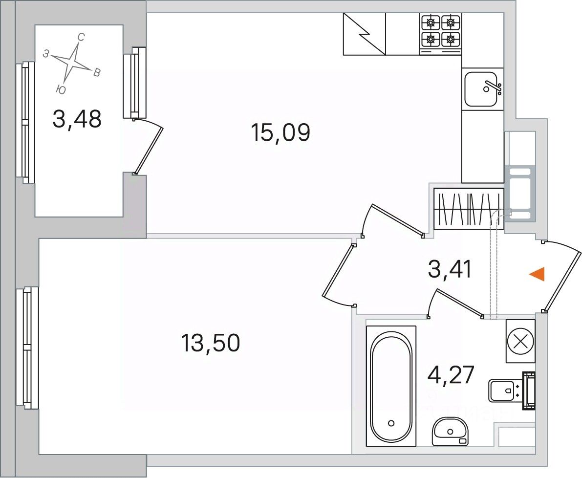 Жилая площадь13,5 м²