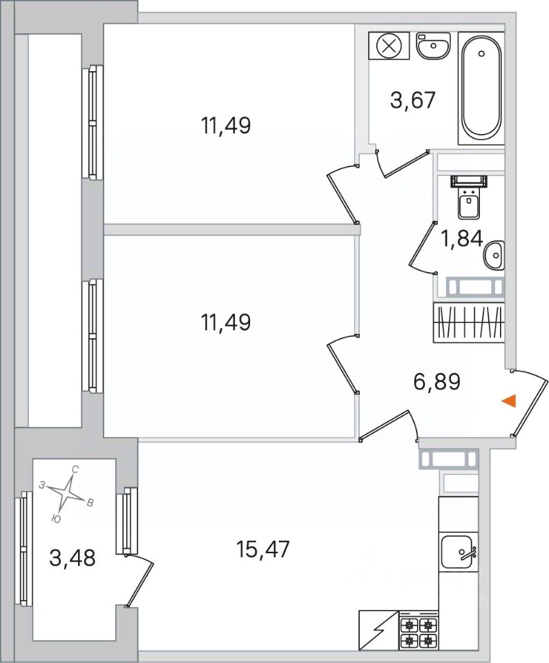 Площадь кухни15,5 м²