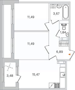 Общая площадь50,85 м²