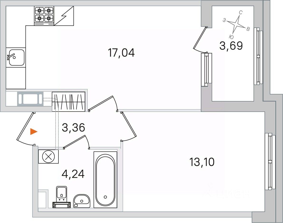 Жилая площадь13,1 м²