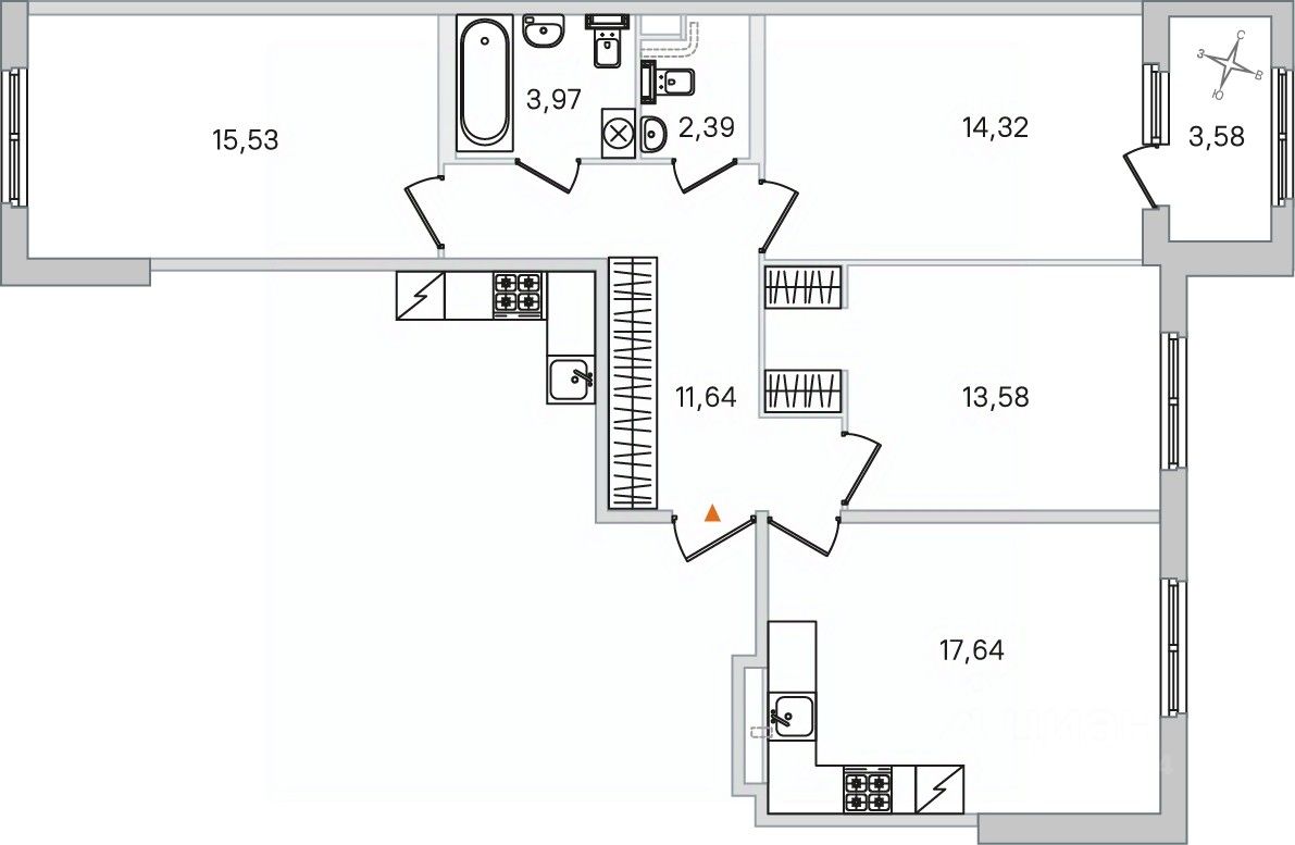 Площадь кухни17,6 м²