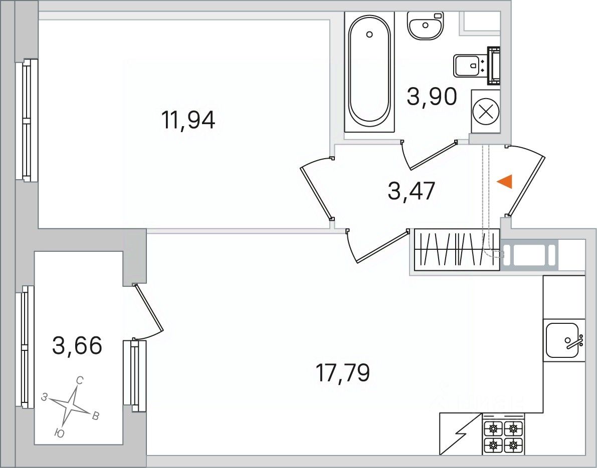 Жилая площадь11,9 м²