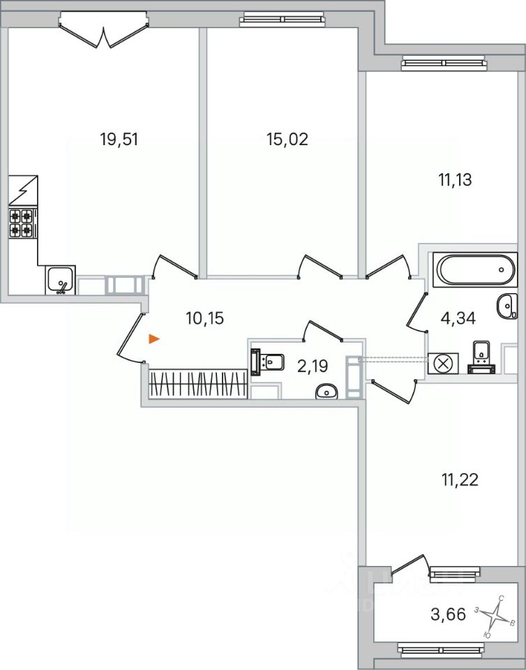 Площадь кухни19,5 м²