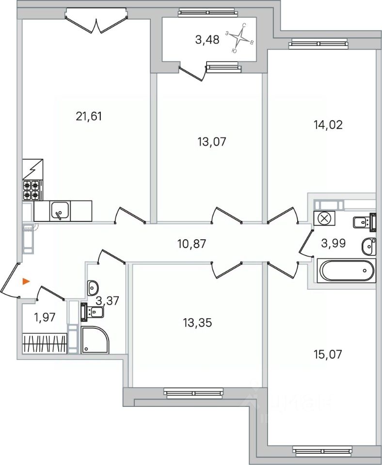 Площадь кухни21,6 м²