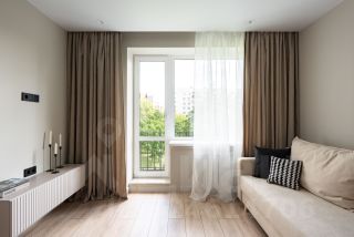 - Гостиная, 13,6 кв. метров, с удобным раскладным диваном и выходом на балкон, зоной ТВ.