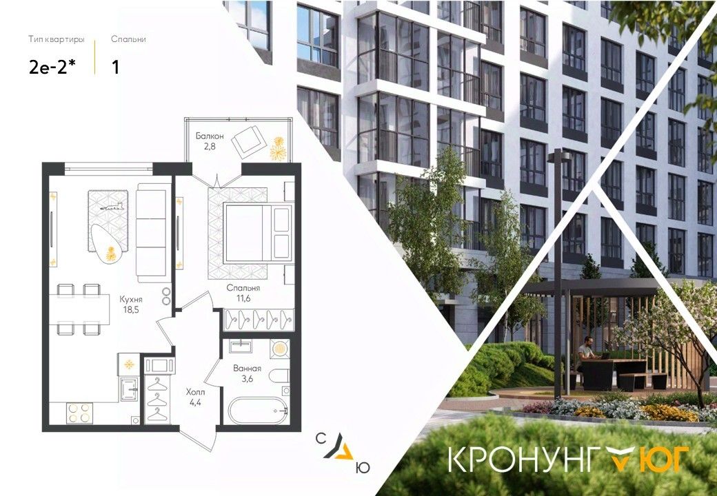 Хит продаж!. Кронунг ЮГ- современный жилой комплекс комфорт-класса на берегу реки Дудергофки. Невысокая этажность, современная архитектура. Благоустроенный внутренний двор будет включать в себя спортивные площадки, в том числе памп-трек, места для отдыха, прогулочную набережную, детские игровые площадки, места для выгула собак, шезлонги вдоль берега реки Дудергофки. Для автомобилей предусмотрен трехэтажный отдельно стоящий паркинг и парковочные места с зарядными станциями для электромобилей на территории ЖК. Локация: • 1 минута до автобусной остановки • 20 минут до метро • 5 минут до КАД