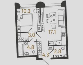 Жилая площадь10,3 м²