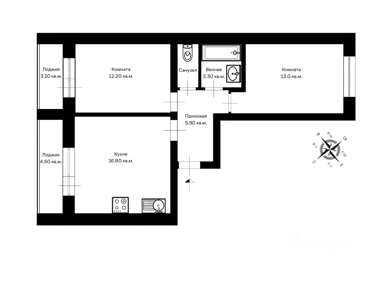 2 лоджии - 3,1 кв.м и 4,5 кв.м